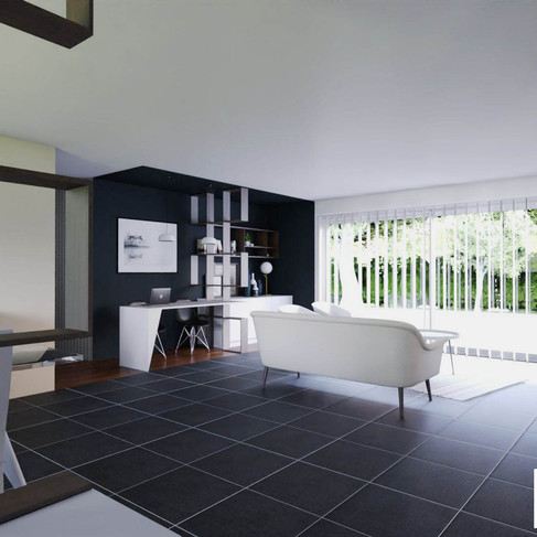 Ce projet vise à décloisonner les espaces, créer une entrée aérée, un salon ouvert vers la cuisine mais où l'on peut se cacher… Intégrer un bureau… Voici les propositions… dont 3 interprétations d'un espace de travail à la maison... ce projet vous plaît ?